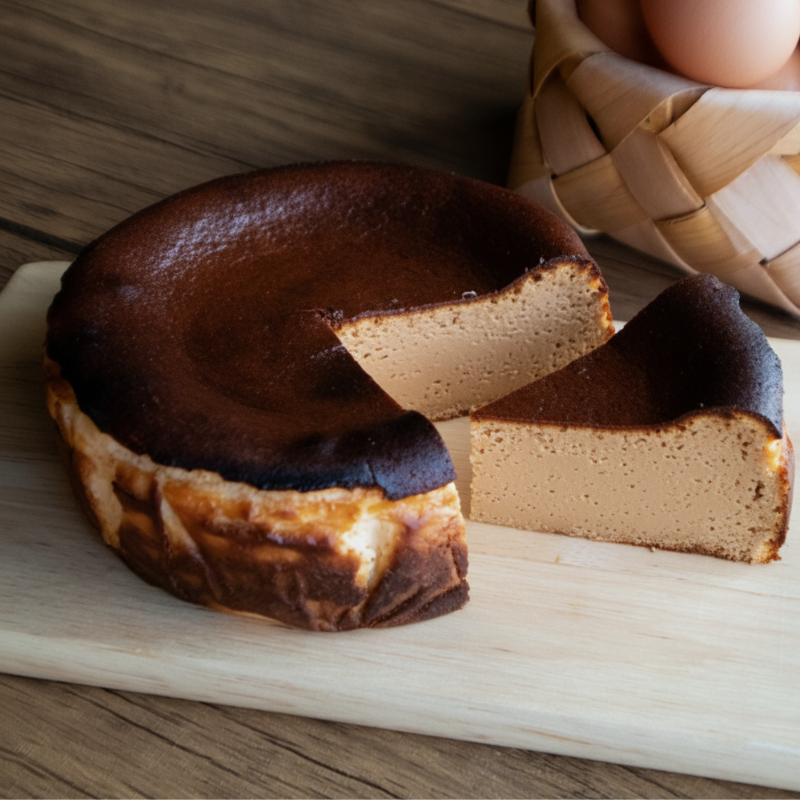 福島県いわき市でソフトクリーム専門店ame Cafeにて発売を開始した感動チーズケーキ「アムバスク」わずか2ヶ月で1000セットが完売。バスクの特徴は濃い焦げ目としっとり食感高温で長時間焼き上げ、焼きを重ねる事で最高のバスクが誕生。テレビやメディアに年間50社以上の取材の嵐。累計29000ホール達成。
